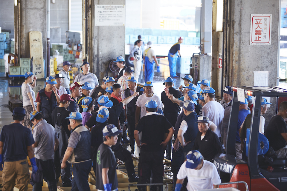朝の漁港は漁師、買い付けの業者、そして隙あらばと獲物を狙う海鳥たちの活気に満ちている。あるところで競りの人だかりができると、すぐにまた移動し、また、と繰り返しながらどんどんと魚が売られていく。