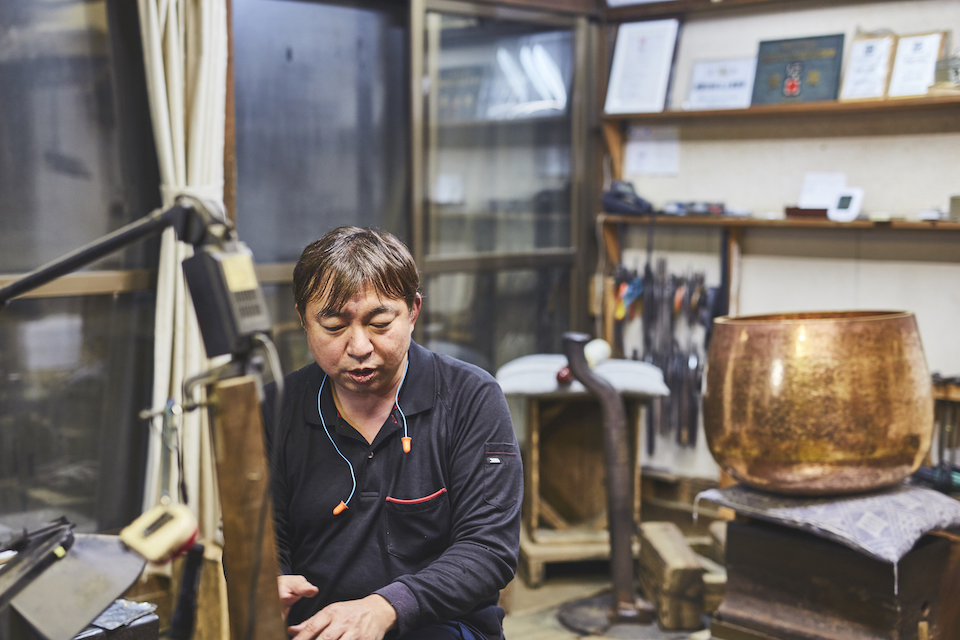 島谷さんは日本に数人しかいない「おりん」職人の1人であり、シマタニ製の「おりん」は全国の名だたる寺院で使われている。